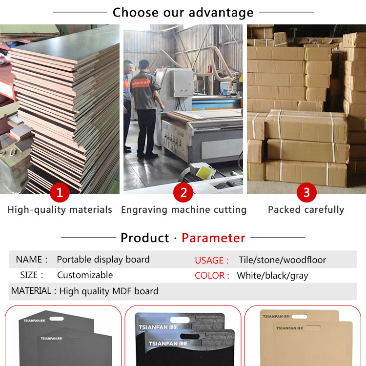 This compact and sturdy stone sample board display is designed for professional use.