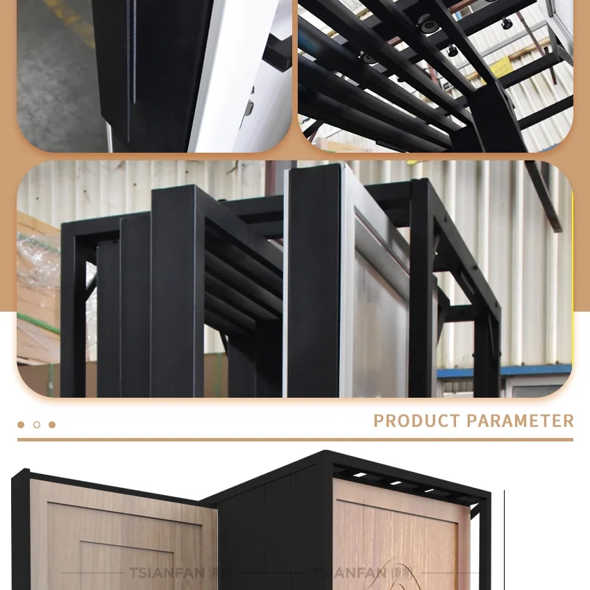 This is a wooden sample rack that can be used to showcase our stone products in a store or showroom setting. It features a push-and-pull design that allows for easy movement and organization.