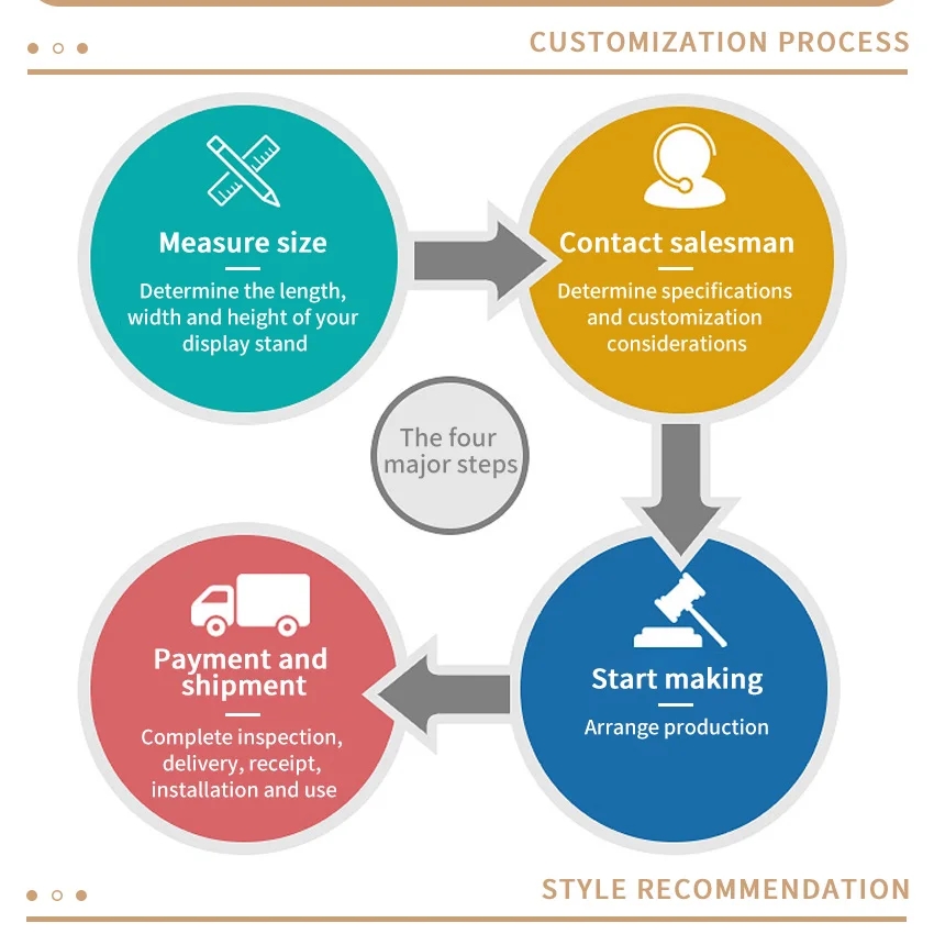 PaymentTT, trade assurance, etc.PackageCustomized metal floor standing display stands are packaged using bubble wrap, stretch film, sturdy export cartons and plywood crates.