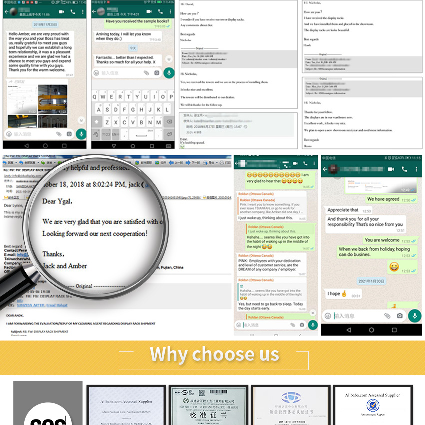| Payment | TT, trade assurance, etc. | Package | Customized metal floor standing display stands are packaged using bubble wrap, stretch film, sturdy export cartons and plywood crates. |