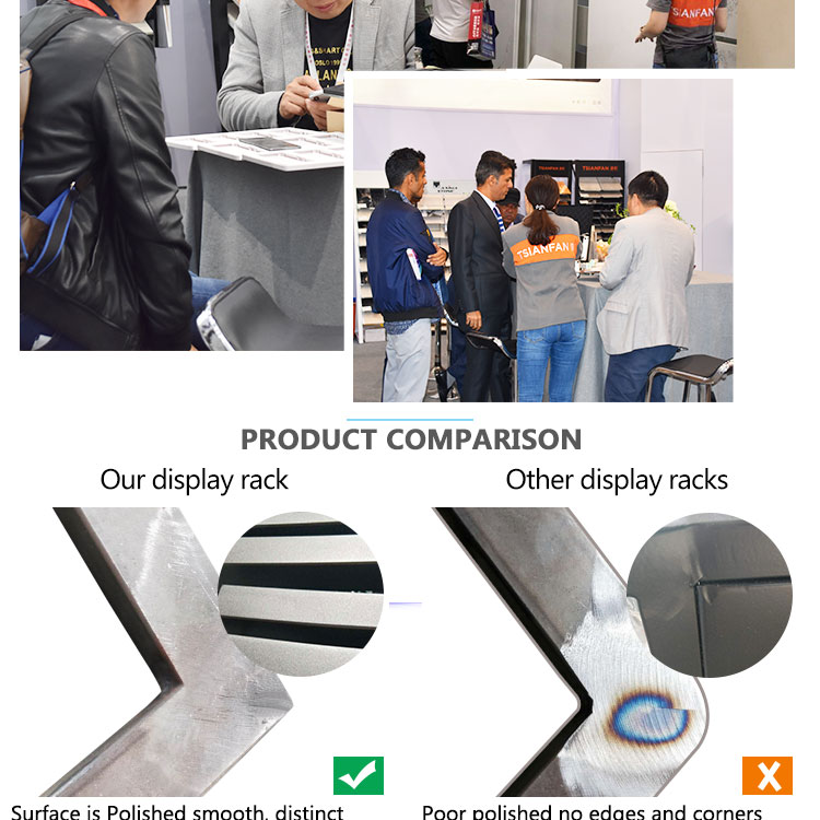 | Payment | TT, trade assurance, etc. | Package | Customized metal floor standing display stands are packaged using bubble wrap, stretch film, sturdy export cartons and plywood crates. |