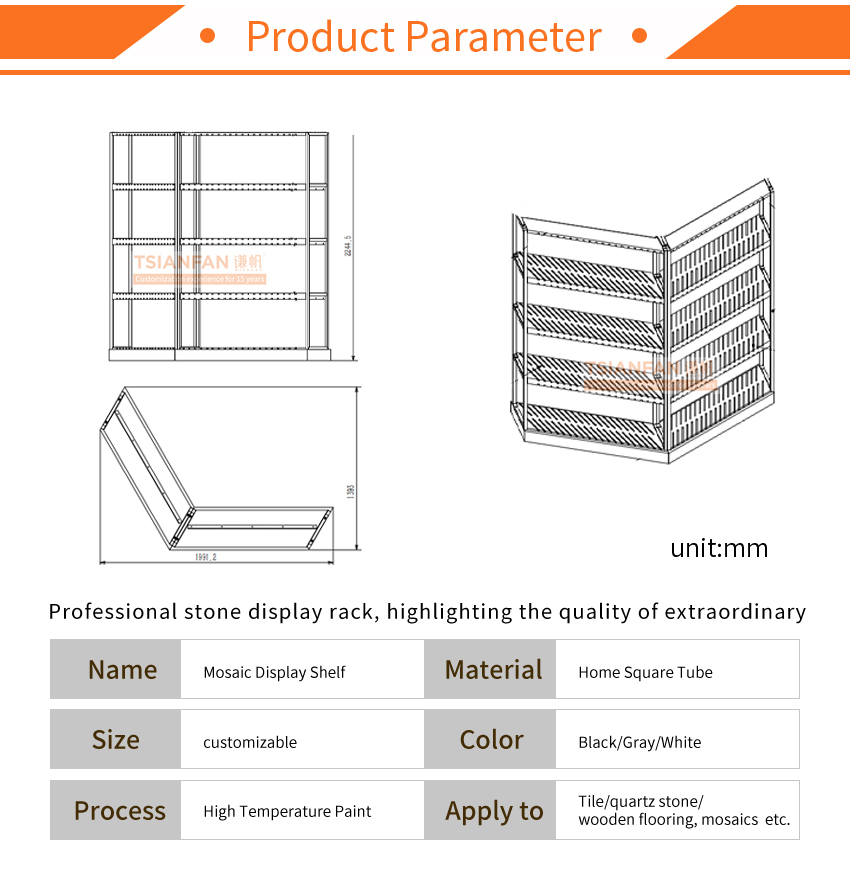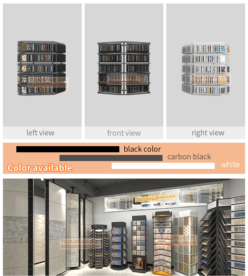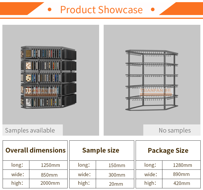 We can customise the size of our logo wood flooring sample display rack, as well as our quratz flooring display rack for tile samples, mosaic samples and sample boards.