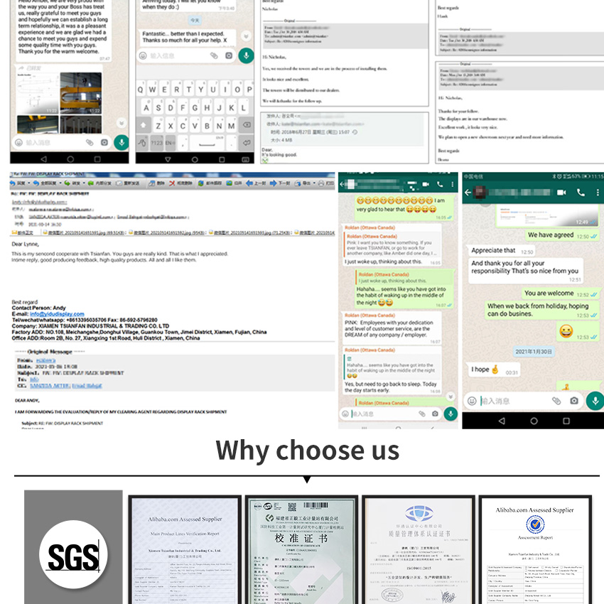 PaymentTT, trade assurance, etc.PackageCustomized metal floor standing display stands are packaged using bubble wrap, stretch film, sturdy export cartons and plywood crates.