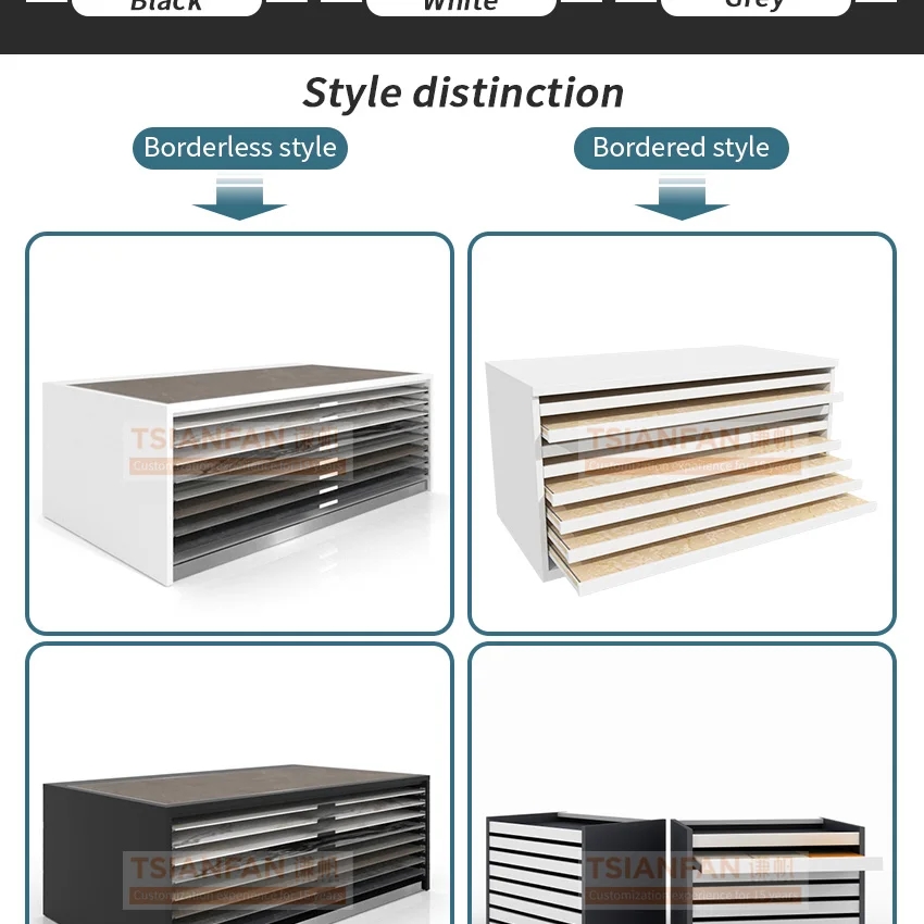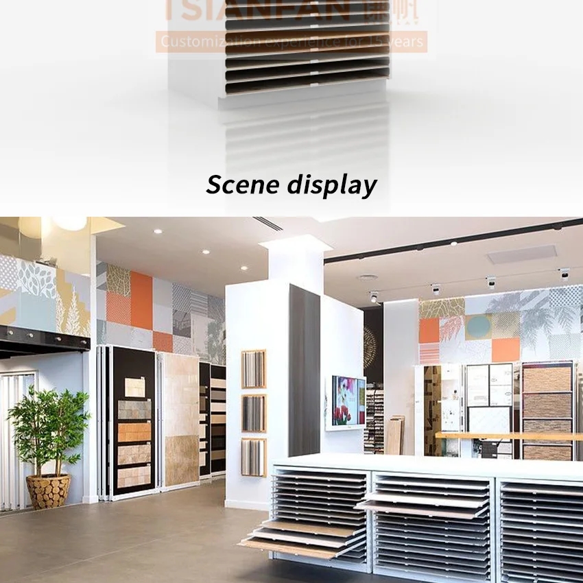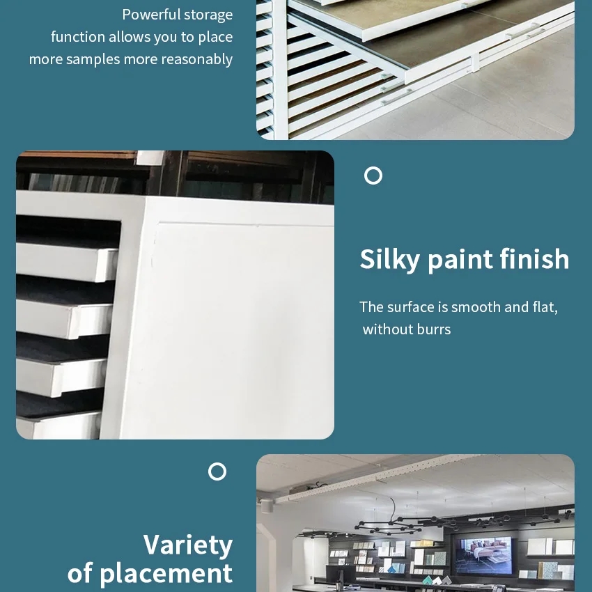 These stackable tile sample display trays save space and can be easily arranged according to different display needs, providing flexibility.