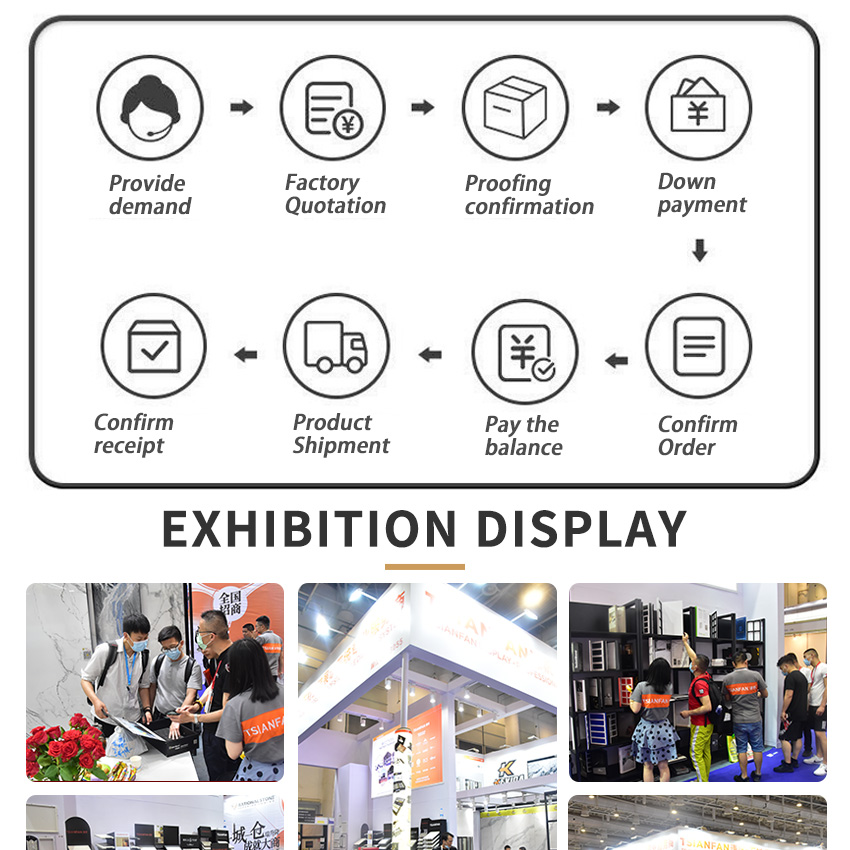 | Shipping | By sea, by air, by railway, etc | Servlce | 1.Free design; 2.Value-added services (provided free solution concept); 3.Installation instruction; 4. Take measurements; 5 Professional after-sale service. |
