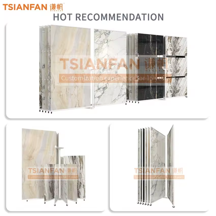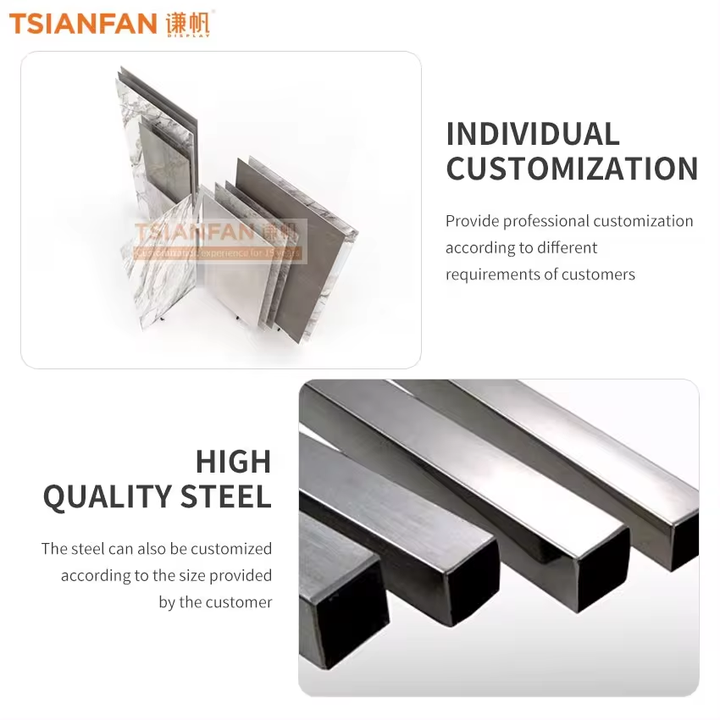 The tile holder on this tile display stand is a well – engineered design. Made of durable materials, it securely holds tiles, presenting them neatly and making the stand perfect for showroom displays.