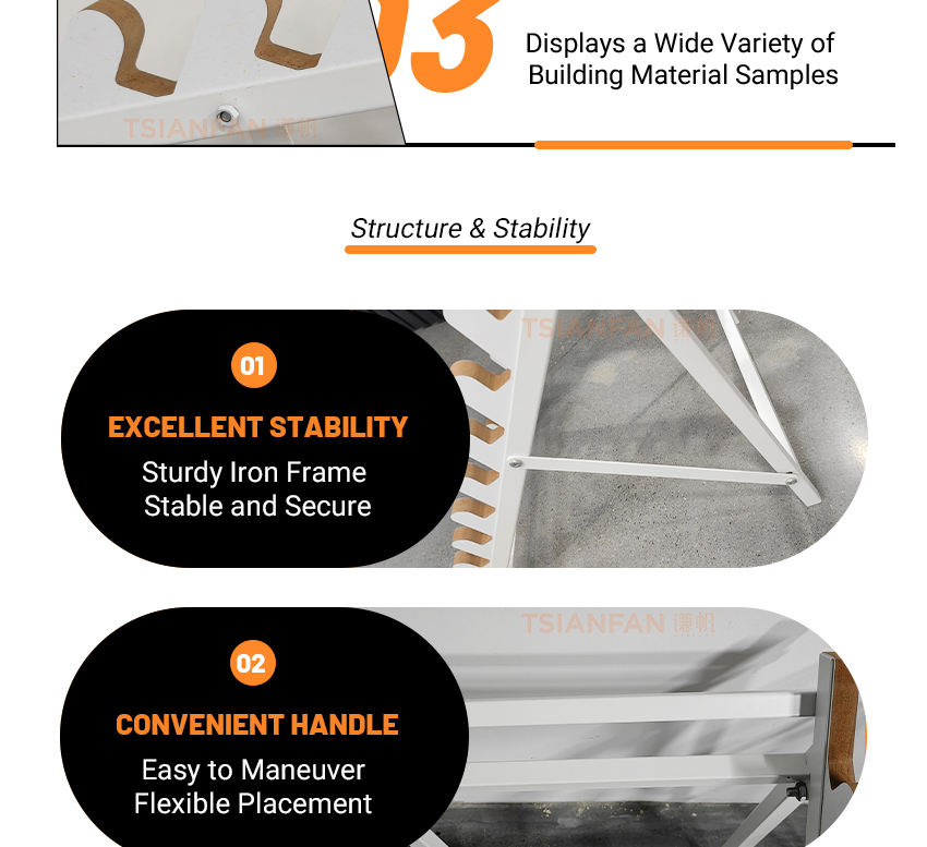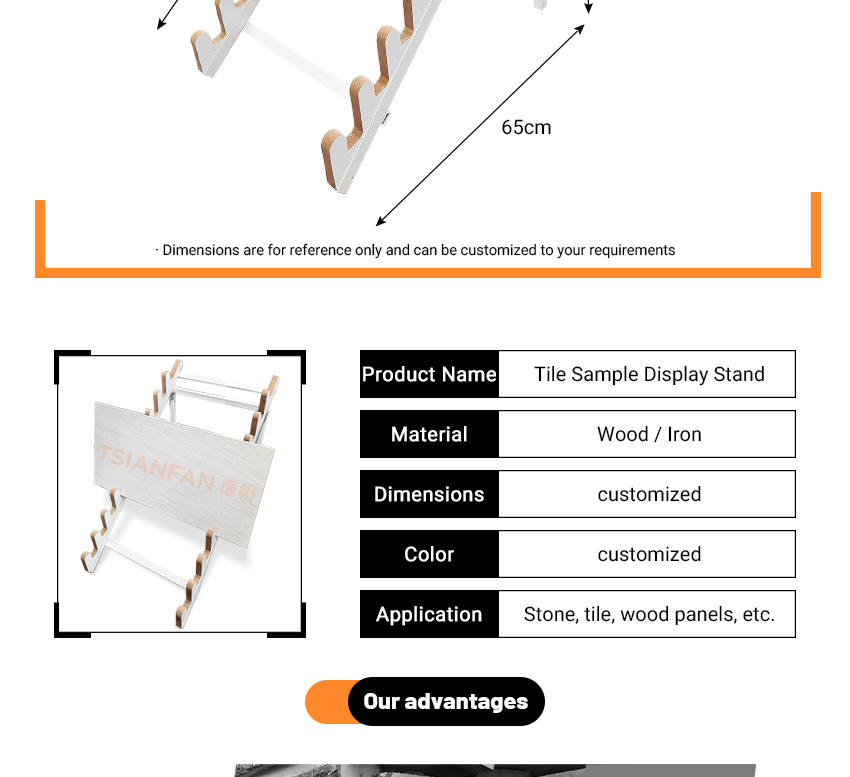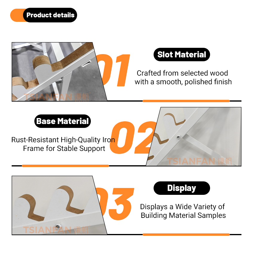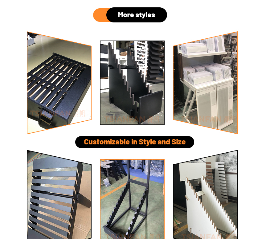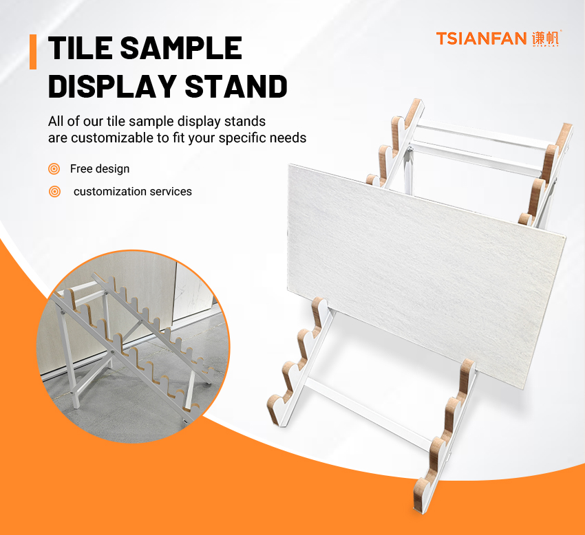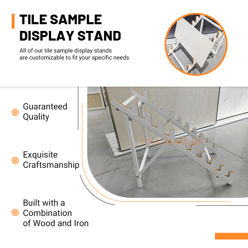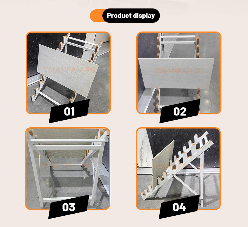 This basic tile display rack boasts great versatility: use it on countertops or mount it on walls. It’s simple, durable, saves space, and keeps tile samples organized—suitable for small shops, showrooms, or pop-ups.