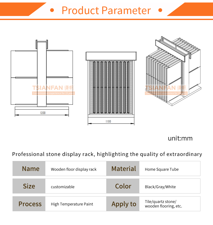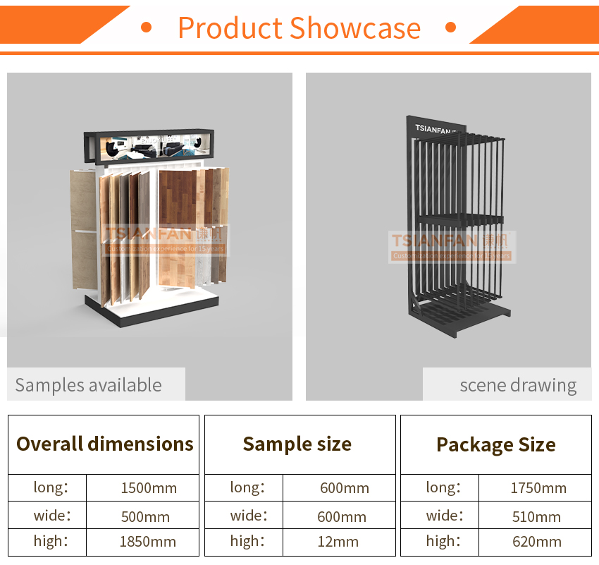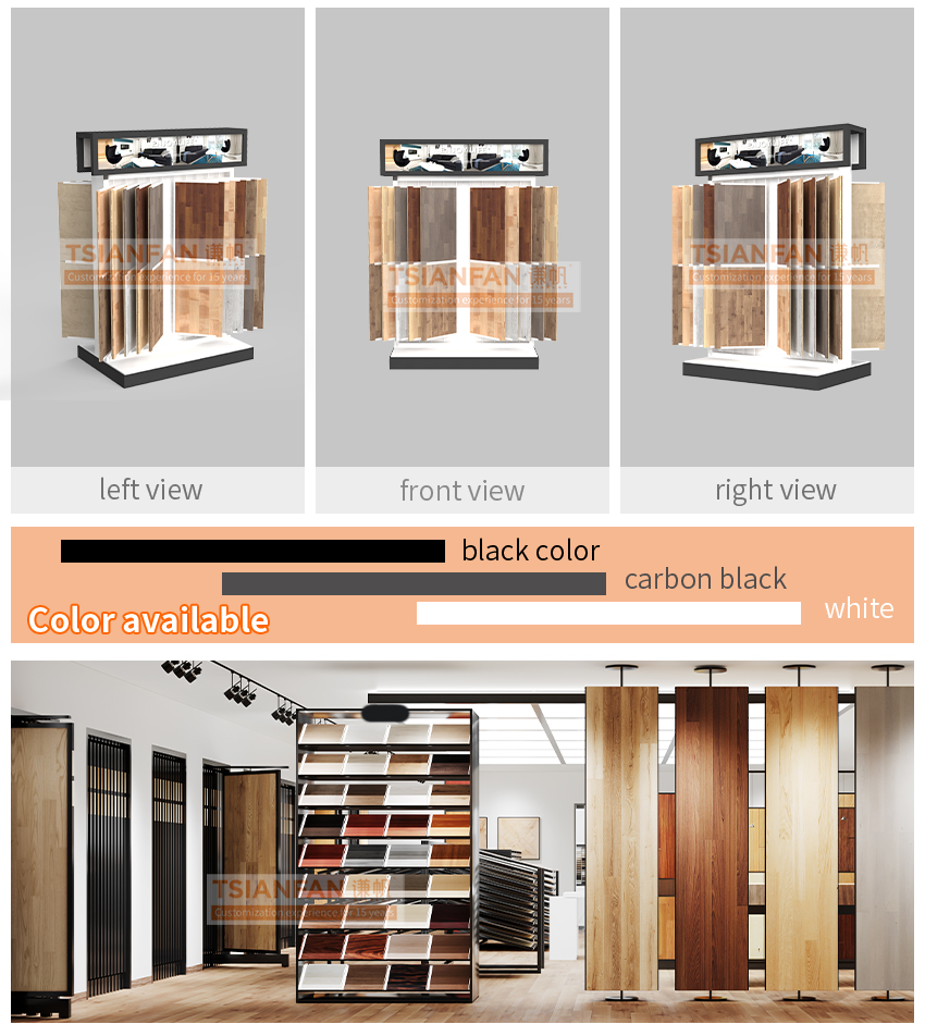 The factory is able to customize the flooring displays according to your specific needs, which are made of high quality iron material. These displays have a strong visual appeal and are undoubtedly the best choice for displaying all types of wooden flooring samples.