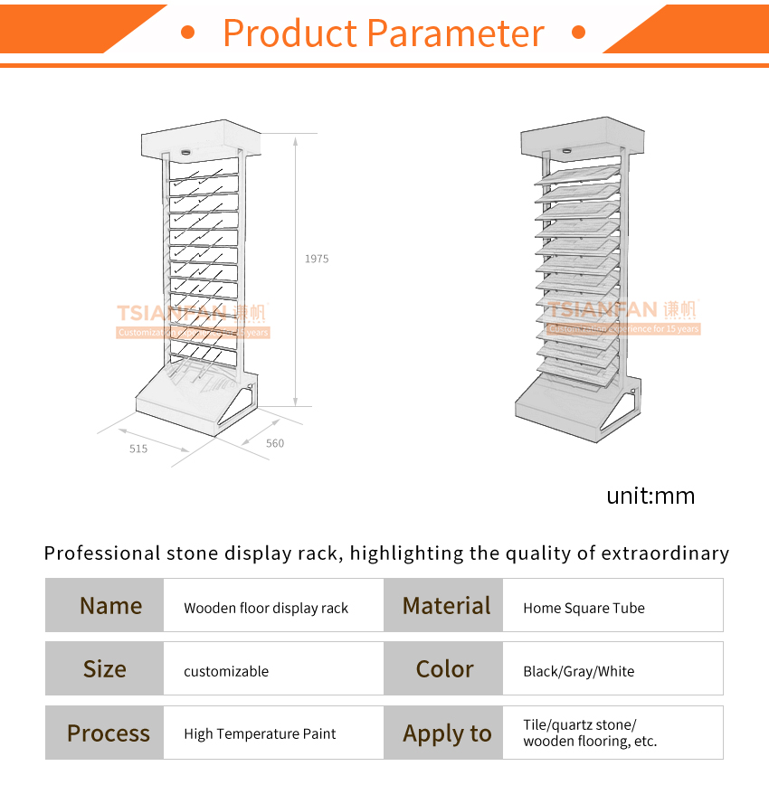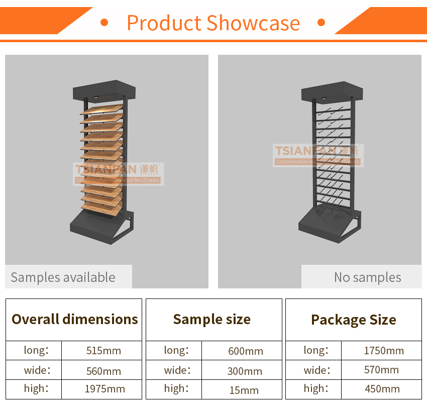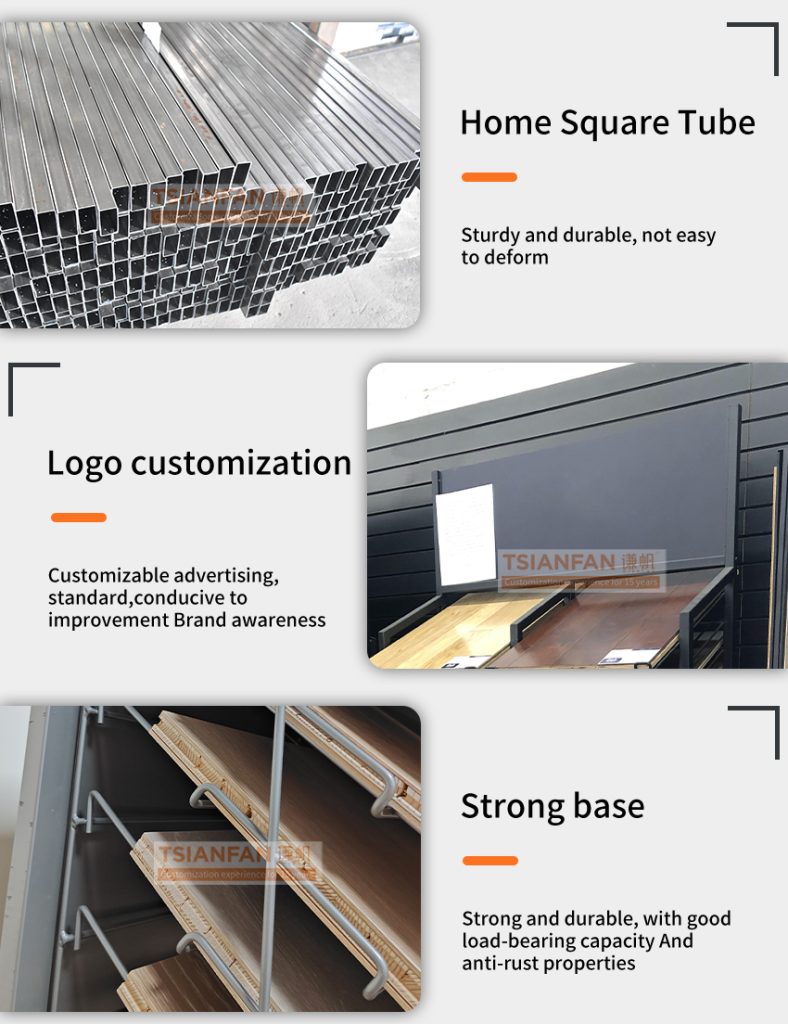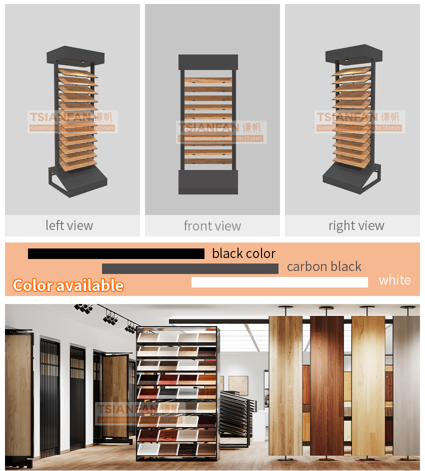 This wood flooring sample display rack has an innovative design and can be used in many different scenarios. Whether it is used as a wood flooring display stand, as a prop for promotional activities, or as a general product display stand, it can show extraordinary results!